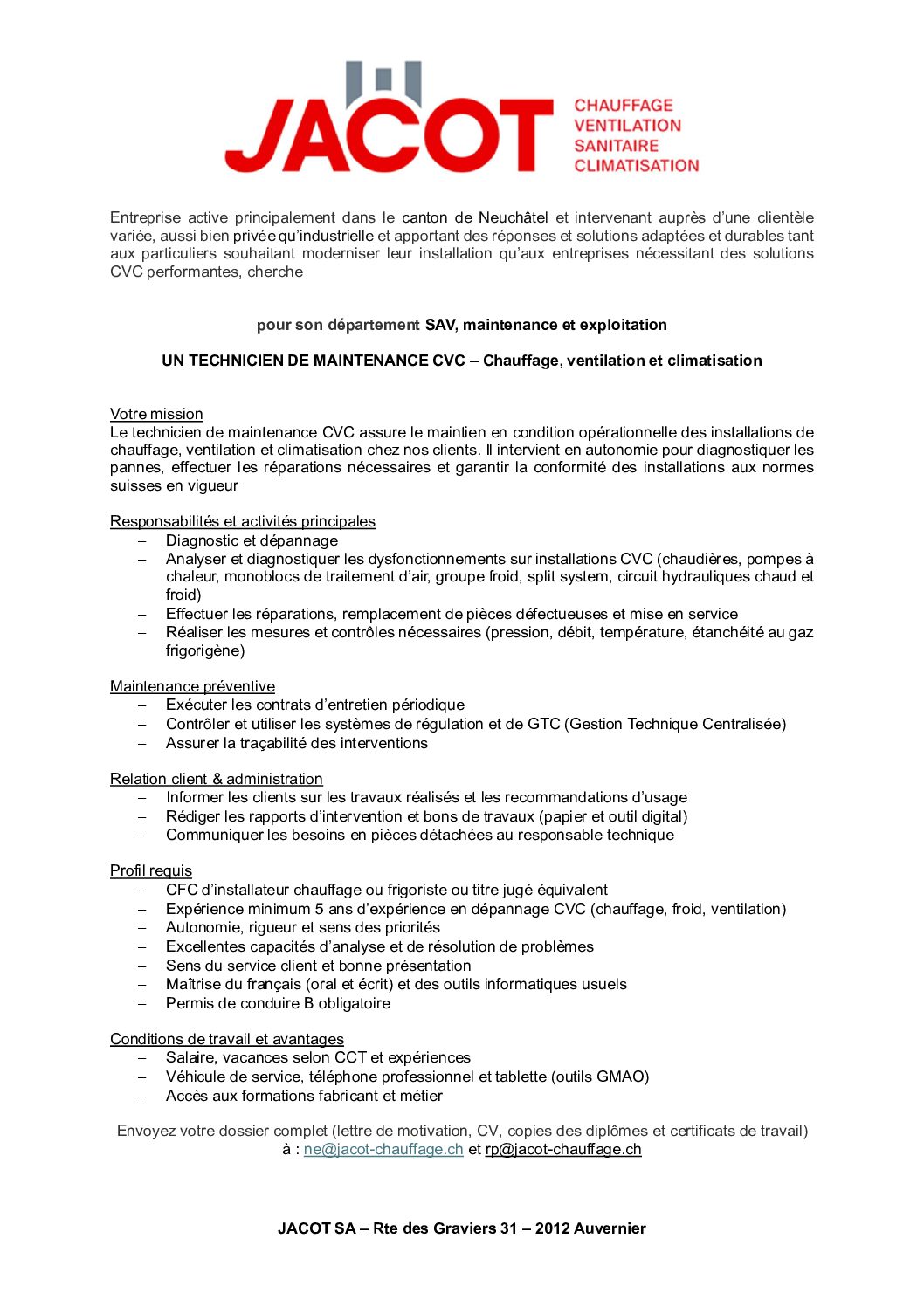 Rachat Jacot Chauffage SA